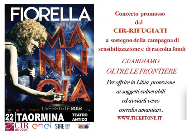 La musica che promuove i valori della solidarietà, dell'accoglienza e della convivenza pacifica per dare sostegno e protezione ai rifugiati che si trovano in Libia, anche nei Centri di detenzione: con questo spirito il Cir - Consiglio Italiano per i Rifugiatiha scelto Fiorella Mannoia come protagonista del grande concerto in programma a Taormina il prossimo 22 luglio, organizzato per raccogliere fondi da destinare al programma Guardiamo Oltre le Frontiere (2018-2020).