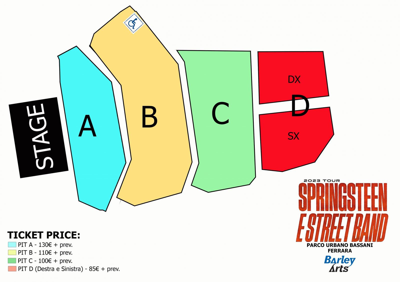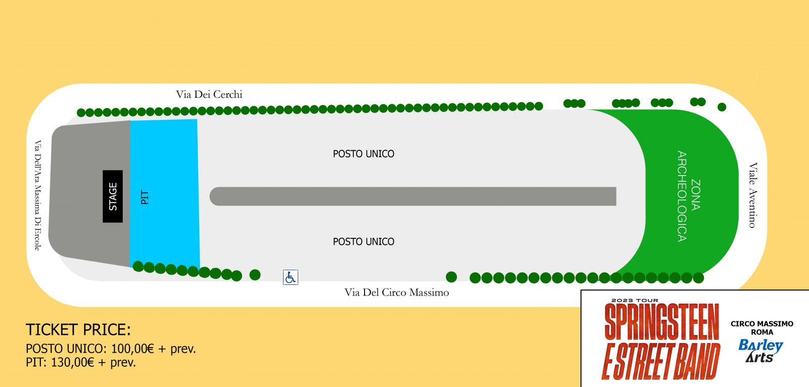 Nella prossimità delle date dei concerti diffonderemo piantine dettagliate delle aree stesse; nel frattempo sottolineiamo che fotografie di allestimenti precedenti delle location possono alimentare una inadeguata informazione ed una rappresentazione scorretta di quanto il pubblico troverà e vivrà in occasione di questi tre concerti.