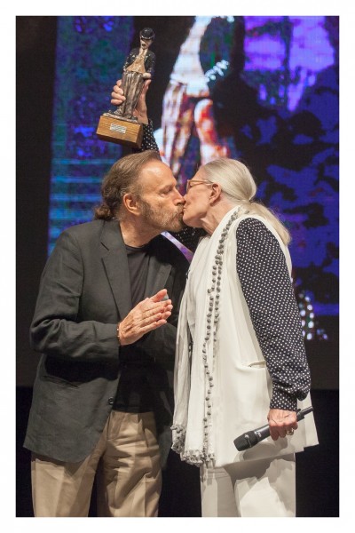 Vanessa Redgrave sale sul palco del Premio Charlot, accolta dalla standing ovation del pubblico di Salerno, mentre sul maxi schermo scorrono le immagini della sua straordinaria carriera, lei ringrazia tutti e racconta un po’ di se e un po’ del suo impegno per chi è più debole, per chi è più solo e soprattutto per la Palestina, affinché vengano riconosciuti i loro diritti. Gli applausi non si contano, ogni parola ogni frase del Premio Oscar inglese viene interrotta dal pubblico che continua ad attribuirgli i giusti meriti e che concorda in pieno con tutto ciò che lei dice sul palcoscenico contro la guerra, contro la disoccupazione, contro il razzismo, il fascismo, il nazismo. E’ questo il momento più bello in assoluto della serata di gala della XXX edizione del Premio Charlot. Il momento sicuramente più atteso. La Redgrave non si nega al suo pubblico e sul palco, una volta raggiunta dal marito Franco Nero, si diverte a ricordare dei loro primi incontri, dei film girati insieme e del loro matrimonio rimasto segreto per anni. Regala un ventaglio rosso al presentatore Piero Chiambretti e accoglie a braccia aperte l’arrivo sul palco di Eugène Chaplin che gli consegnerà il Premio Charlot Grandi Protagonisti dello Spettacolo. Un lungo e forte abbraccio, poi la consegna della statuetta raffigurante il grande Charlot e lei che la solleva in alto per poi accarezzarla con il volto, per poi baciare il marito Franco sollevando ancora il premio appena ricevuto. “Sono davvero onorato di consegnare a lei questo Premio – ha detto Eugène Chaplin – lei che è stata non solo la più grande attrice di tutti i tempi, ma soprattutto la prima a dare voce a chi non ha voce, la prima a parlare e a segnalare le tante, troppe ingiustizie che ci sono nel mondo. E stata la prima e continua ancora oggi, con forza ed impegno a difendere i diritti di tutti gli esseri umani”. Dunque la consegna del Premio a Vanessa Redgrave è stato il momento più bello della serata di gala dello Charlot, come momento bellissimo è stato l’intervento di Carlo Verdone, premiato da Valerio Caprara e dal presidente della giuria Nino Petrone per il film “Benedetta Follia”. Verdone ha scherzato con Chiambretti, ma soprattutto con il suo pubblico, che ancora una volta gli ha dimostrato tanto affetto e amore. Applausi anche per tutti gli altri premiati della serata, presentati sul palco da Chiambretti che è stato il vero mattatore della serata e dalla bella Metis Di Meo, a cominciare da Ficarra e Picone amici dello Charlot. A loro è andato il premio speciale per “Processo a Chinnici”, il corto diretto da Marco Maria Correnti, prodotto da Tramp Limited da un’idea di Giovanni Furnari, per la particolare tematica trattata, la mafia vista dai ragazzini, con protagonisti tutti giovanissimi attori debuttanti. Belle le esibizioni musicali di Luca Foffano, il tenore di Venezia, giunto a Salerno accompagnato dall’ Assessore del Comune di Venezia Matteo Senno, il quale ha stretto un gemellaggio tra le due città con il sindaco di Salerno Vincenzo Napoli, e l’esibizione di Bianca Guaccero che ha avuto il compito di chiudere la serata di gala deliziando il pubblico con l’esecuzione di tre brani musicali. Altri riconoscimenti sono stati poi consegnati nel corso della serata per la sezione Cinema Corti a Gianmarco Tognazzi e Carolina Crescentini per il Festival Internazionale Corto Tulipani di Seta Neri, a Clayton Norcross per la fiction Beautiful, per la categoria libri a Catena Fiorello, che ha ringraziato al pubblico dedicandogli una poesia, ed ancora a Sofia Brescia la bambina protagonista dello spot della Buondì Motta e ai dirigenti dell’azienda di dolciumi. Ed ancora a Serena Rossi, Giuseppe Zeno. Per la fiction Don Matteo a Cristiano Caccamo e Maria Sole Pollio, e a Frank Matano per l’opera prima “Tonno Spiaggiato”.