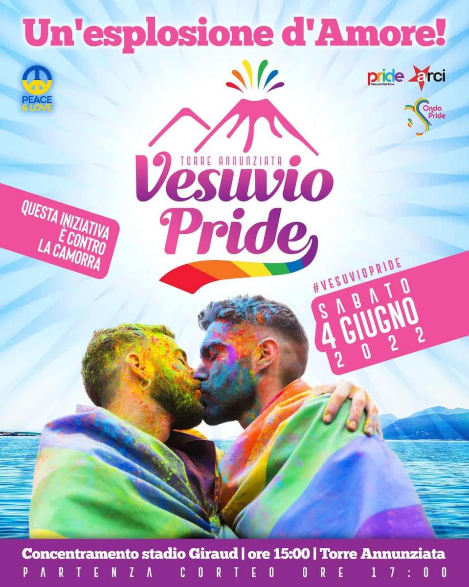 Sarà “Un’esplosione d’Amore” il Vesuvio Pride di Torre Annunziata, previsto per il 4 giugno 2022, fortemente voluto dall’Associazione “Pride Vesuvio Rainbow” di Torre Annunziata (sede in via Fusco, n.1) e che, fra le tante rivendicazioni civili e sociali, si configura come un’iniziativa contro la camorra.