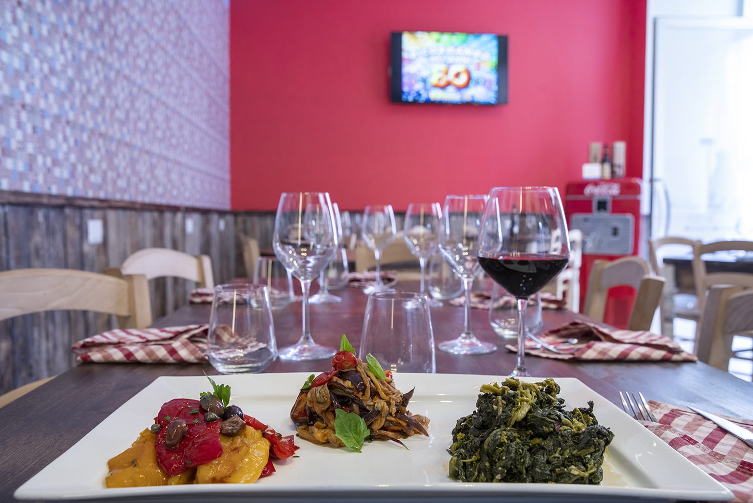 Le proposte in menù sono frutto di uno studio sul bilanciamento dei nutrienti (carboidrati, proteine, fibre e lipidi) effettuato dallo chef e dalla nutrizionista Sabrina Chimenz; così sia i piatti della tradizione che quelli ideati da Antonio Serra sono stati ripensati per andare a comporre un menù funzionale, in modo tale che mangiare fuori non rappresenti più un problema, ma un piacere per chi si siede ai tavoli (pochi, il locale arriva ad un massimo di 28 coperti) dell’Hostaria.