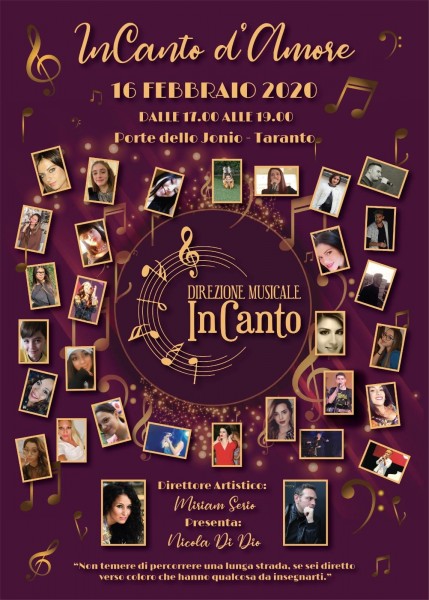 La Direzione Musicale InCanto, con sede in Carosino (TA) alla Via Monte Grappa 83, organizza corsi di canto, preparazione ai casting, musical, musica per bambini, musica d'insieme, corsi di teoria e solfeggio e durante l'anno organizza concerti ed eventi dedicati all'esibizione degli allievi ed inoltre audizioni per concorsi, Masterclass e stage con artisti, direttori d'orchestra, autori e discografici del mondo dello spettacolo.