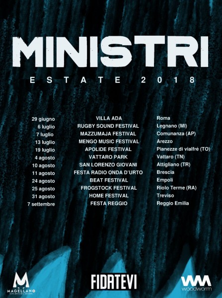 Al via il 29 giugno da Roma il tour “Ministri estate 2018” per presentare al pubblico il nuovo album di inediti “Fidatevi” (Woodworm/Artist First), oltre a eseguire i loro più grandi successi!