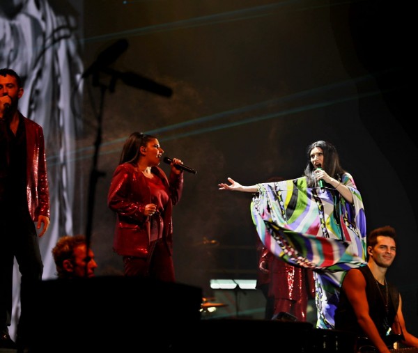 Ogni brano è stato accompagnato da video proiettati che mostrano una Pausini nelle vesti più varie: geisha, rock, atomica, in un look alla Björk o alla Lady Gaga. E così, i suoi successi come Resta in ascolto, E ritorno da te e la trascinante Come se non fosse stato mai amore hanno incantato il pubblico. In particolare, durante la performance di Come se non fosse stato mai amore, Laura ha imbracciato una chitarra, facendo andare il pubblico in visibilio.