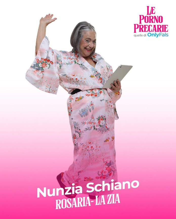 È qui che esplode la grande comicità, quella fatta con intelligenza e ironia chirurgica, quella a cui Maria Bolignano ci ha abituati negli anni: una comicità che non semplifica, ma chiarisce; che non banalizza, ma scava. Nunzia Schiano, Rosaria la zia è travolgente nel dare corpo a una donna anziana pienamente viva, desiderante, sessuale. Il suo personaggio apre uno squarcio necessario sulla sessualità nella terza età femminile, ancora oggi trattata come un tabù imbarazzante, quando dovrebbe essere vissuta come qualcosa di naturale e semplice. Perché, contro ogni idea preconcetta, la sessualità non scompare con l’età: segue piuttosto un principio di continuità, per cui la vita sessuale in età avanzata è lo specchio di quella attraversata lungo l’intera esistenza. E riderne, con intelligenza, è forse il gesto più rivoluzionario di tutti.