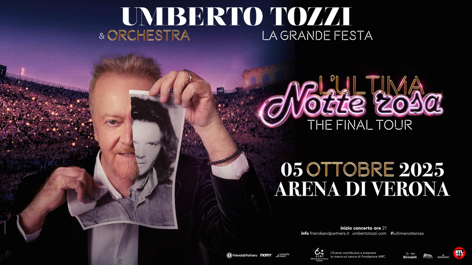 Il L’Ultima Notte Rosa – The Final Tour è il tributo definitivo alla carriera di Tozzi, che ha venduto oltre 80 milioni di dischi in tutto il mondo, calcando i palchi più prestigiosi di quattro continenti e conquistando un pubblico fedele ed eterogeneo. Dopo il trionfo delle prime tappe estive, da Roma a Venezia, fino ai palasport di Milano, Torino e Bologna, il tour prosegue con un calendario ricco di nuovi appuntamenti nei teatri italiani. Un'esperienza che mescola nostalgia e celebrazione, in un tributo a un artista che ha saputo attraversare generazioni e nazioni con la sua musica.
